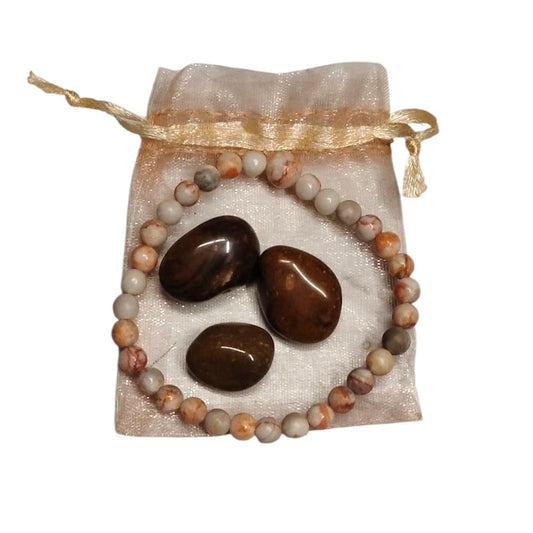 3 Fancy Jasper Tumbled Stones – Calm, Focus, Healing + Organza Gift Bag