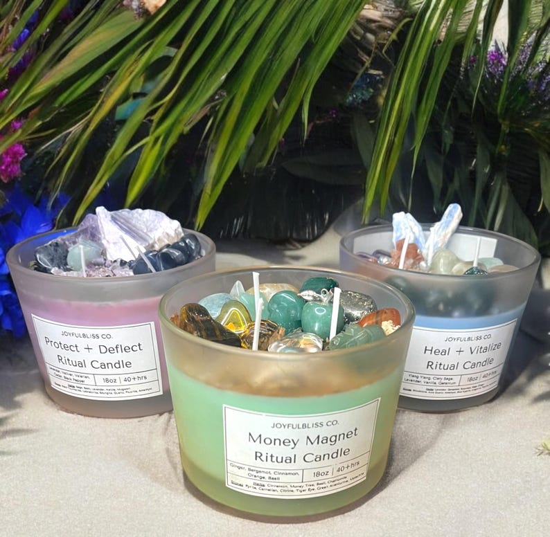 Heal + Vitalize Ritual Candle – 18oz Crystal Healing Candle for Energy Renewal, Wellness & Chakra Balance | JoyfulBliss Co