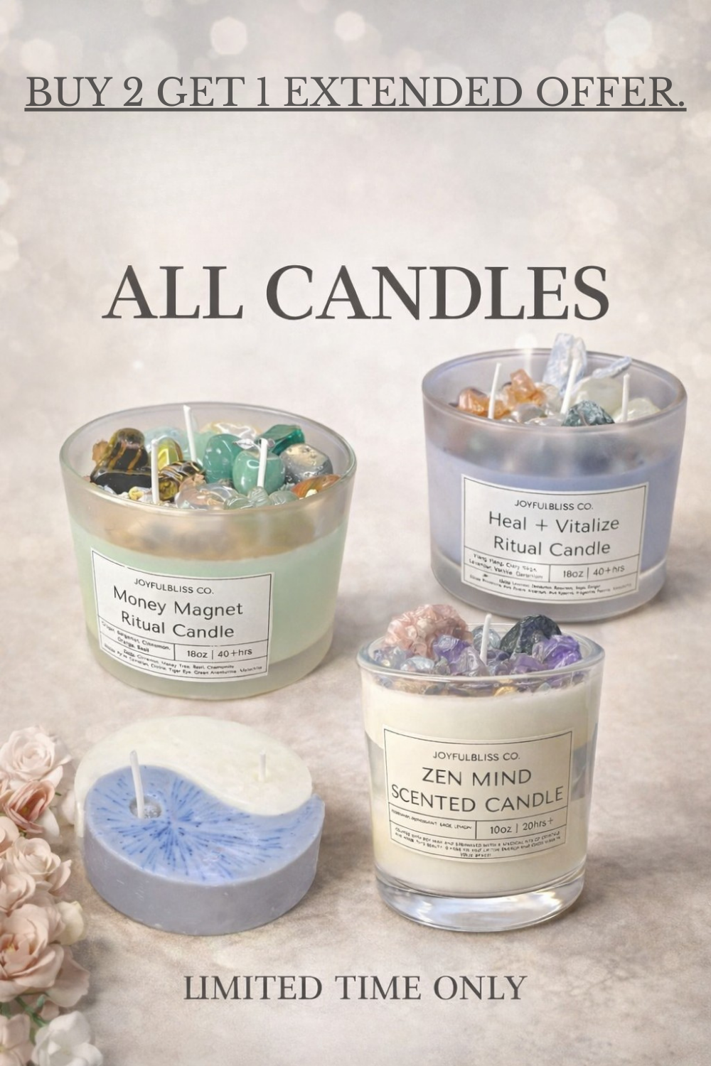 Heal + Vitalize Ritual Candle – 18oz Crystal Healing Candle for Energy Renewal, Wellness & Chakra Balance | JoyfulBliss Co