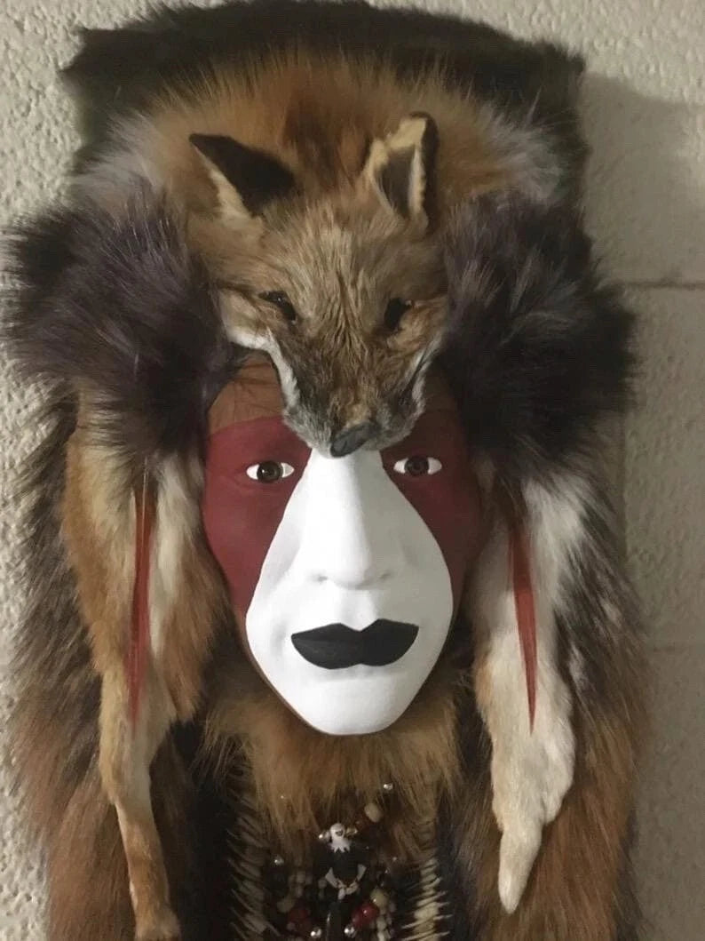 Introducing the Native American Authentic Hand Molded, Hand Painted, Tribal Face — a stunning piece of artistry that transcends mere decoration. Crafted by acclaimed Creek artist La Ne Ayo, this 4-foot masterpiece not only serves as a conversation starter but also as a testament to the rich cultural heritage of Native American tribes.
