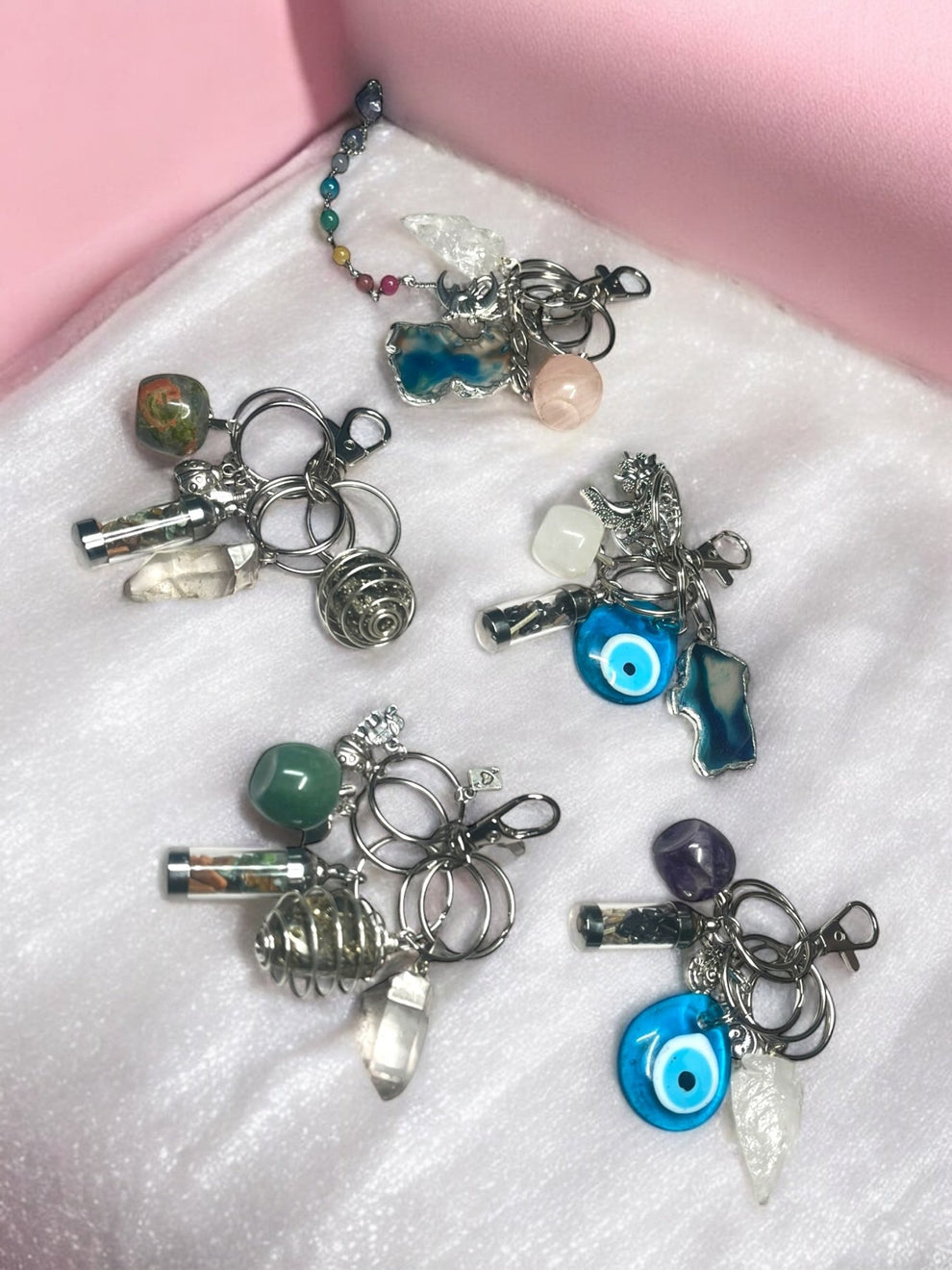 Crafted with durable metal hardware and natural stones, this versatile set makes the perfect gift for crystal lovers, spiritual healers, or anyone seeking balance and protection. Attach them to your keys, purse, backpack, or car mirror for a daily boost of metaphysical energy and style.