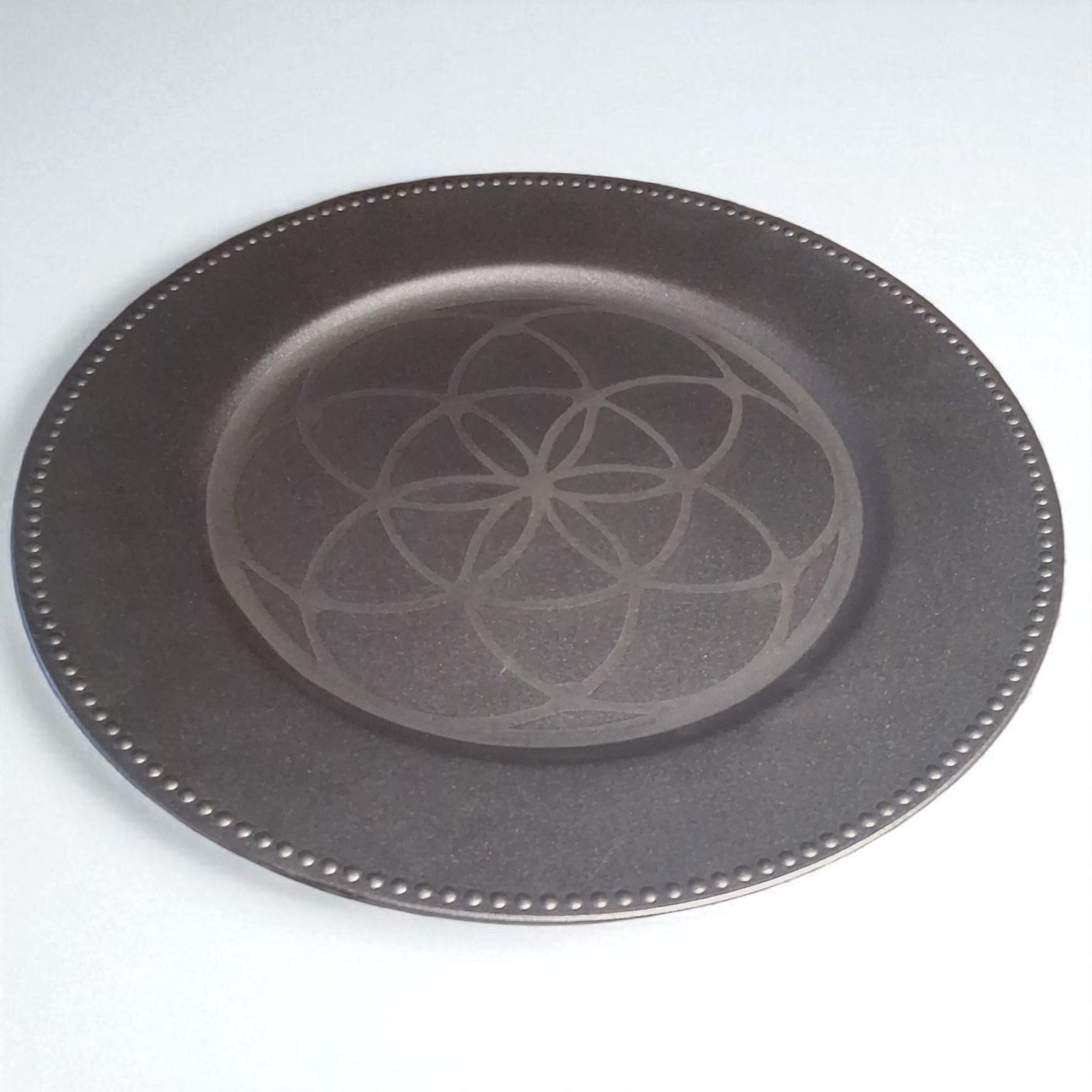 Engraved Silver Plate – 12" Decorative Tray with Flower of Life Sacred Geometry Design