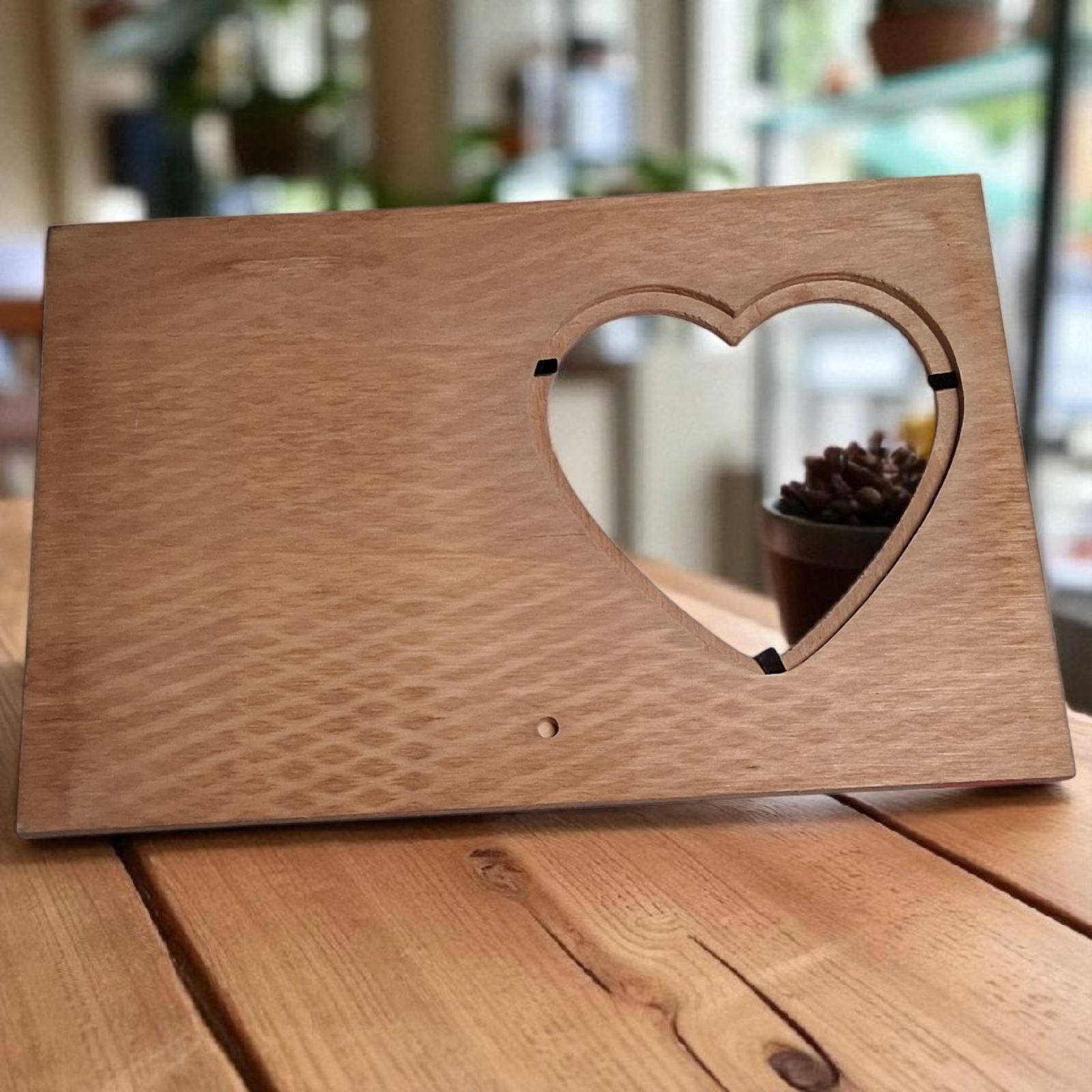 Made from smooth, natural wood with a warm finish, this piece serves as both a motivational reminder and elegant home accent. The engraved lettering adds a handcrafted touch, while the heart window perfectly highlights your favorite photo or memory.