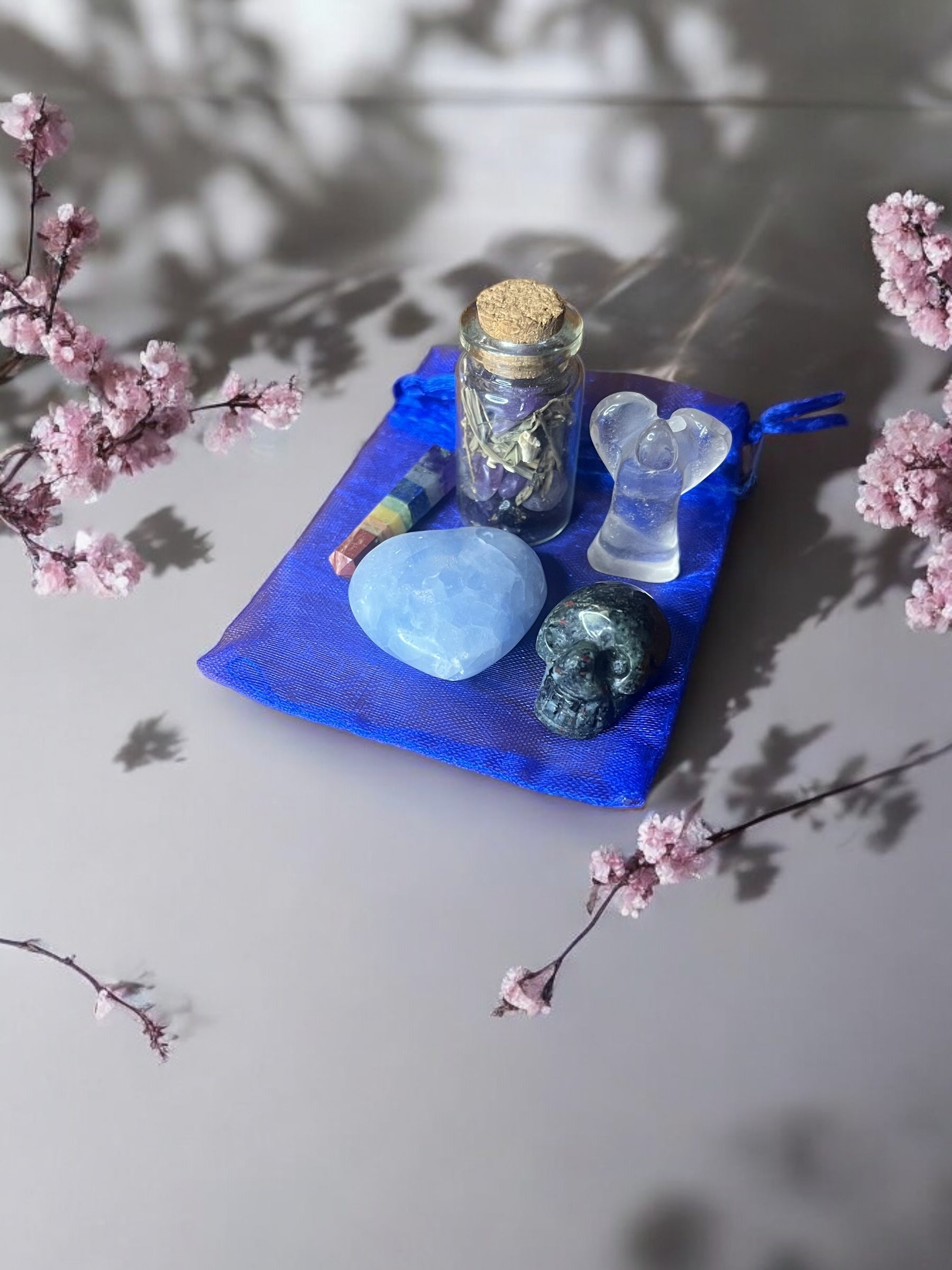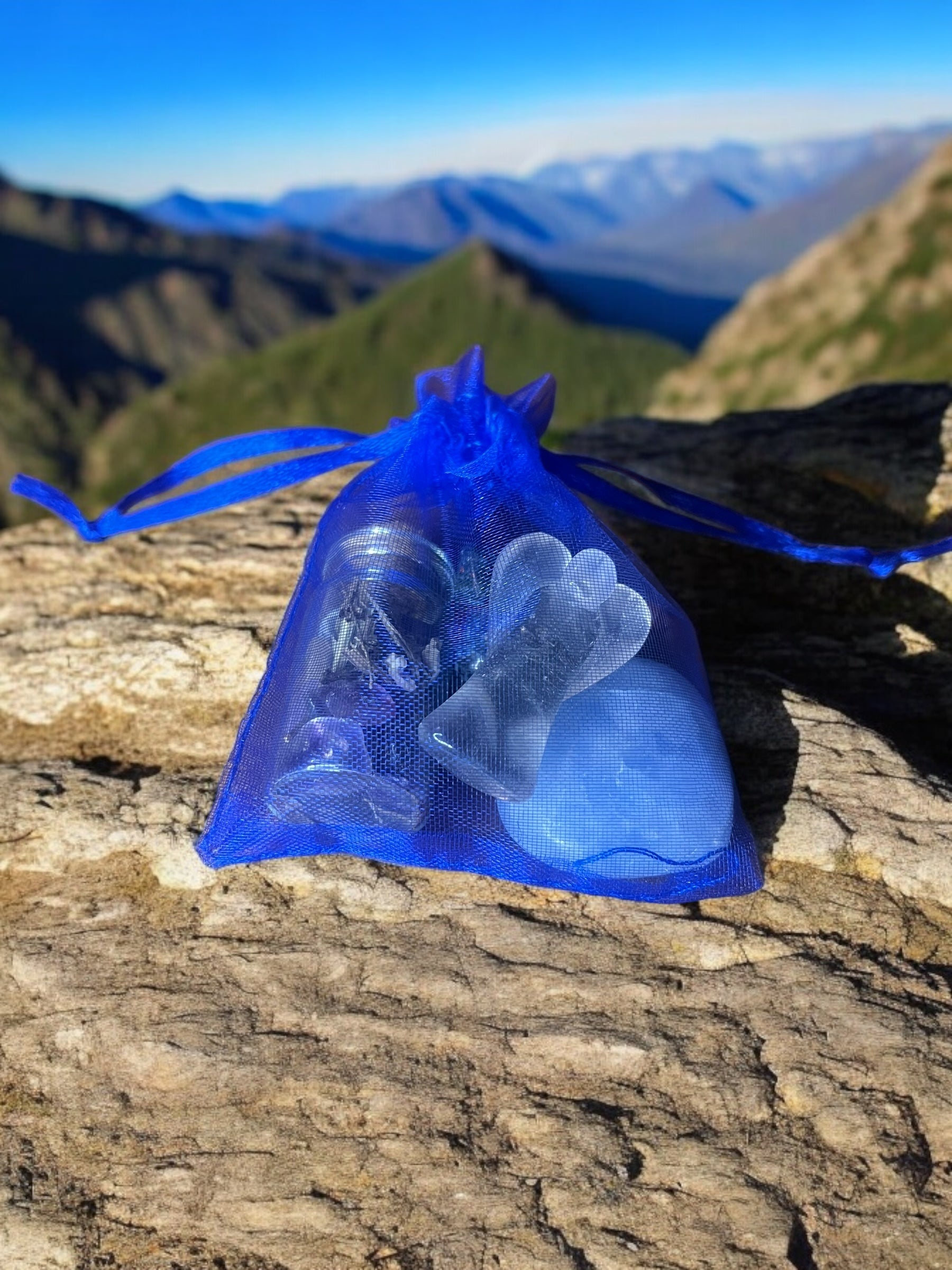• Blue organza mojo bag to hold and energize your items