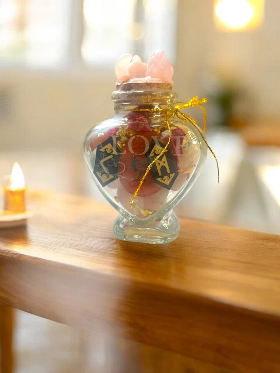 Let your intentions bloom and your heart expand with the gentle magic of the Heart of Love Manifestation Jar.