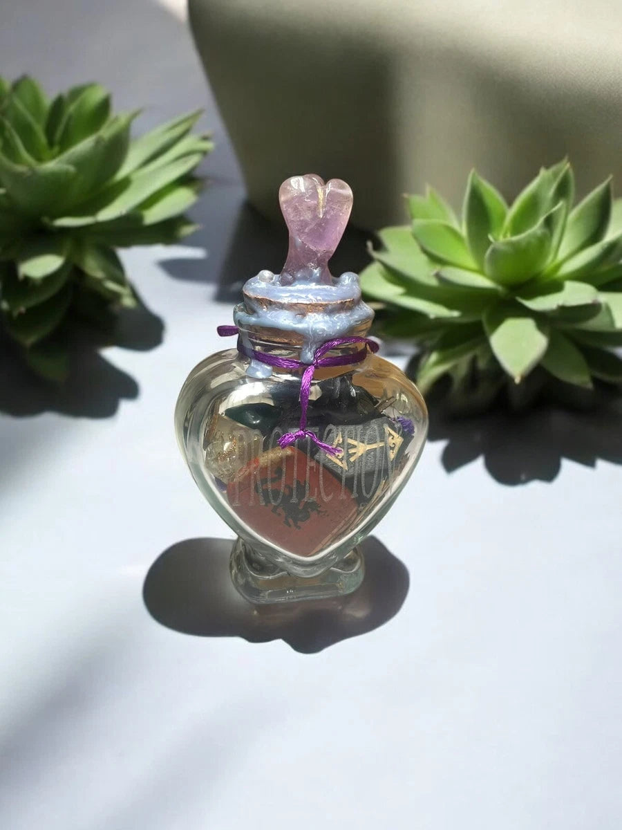 Shield your space and spirit with the Heart of Protection Jar, a handcrafted heart-shaped glass vessel designed to create a barrier against negative energies. Engraved with the word “PROTECTION,” this jar serves as both a powerful talisman and a beautiful centerpiece for your sacred space.