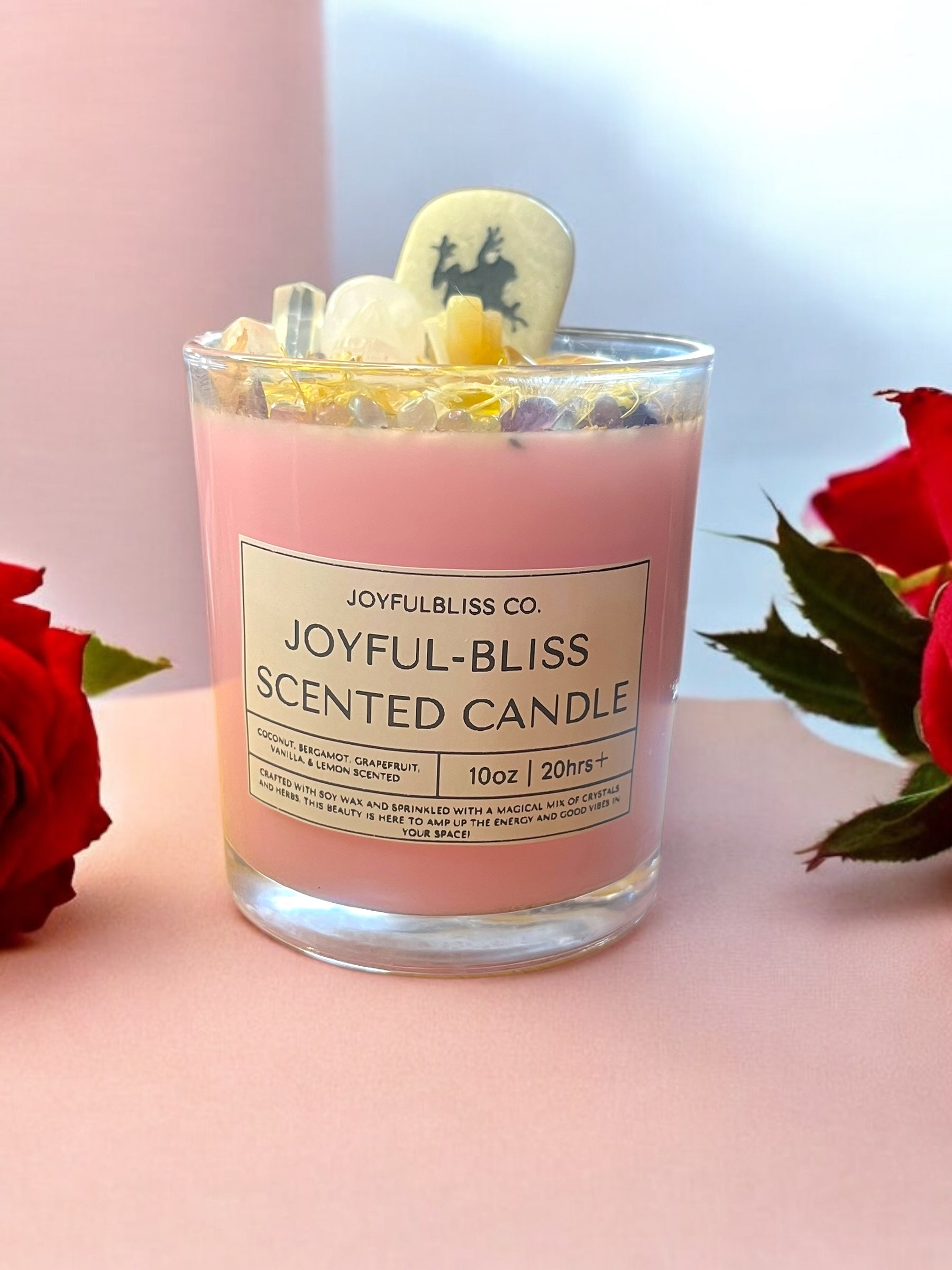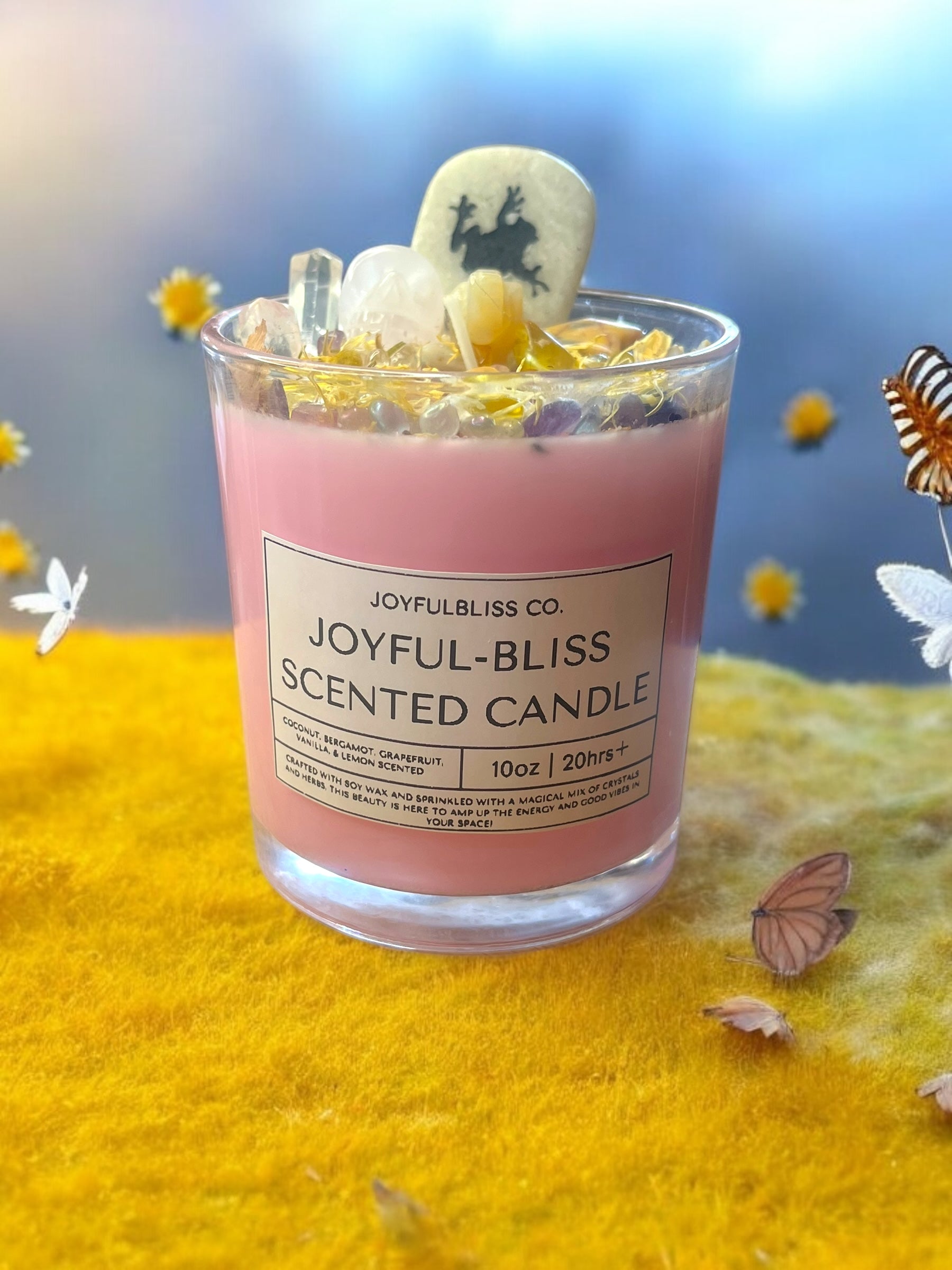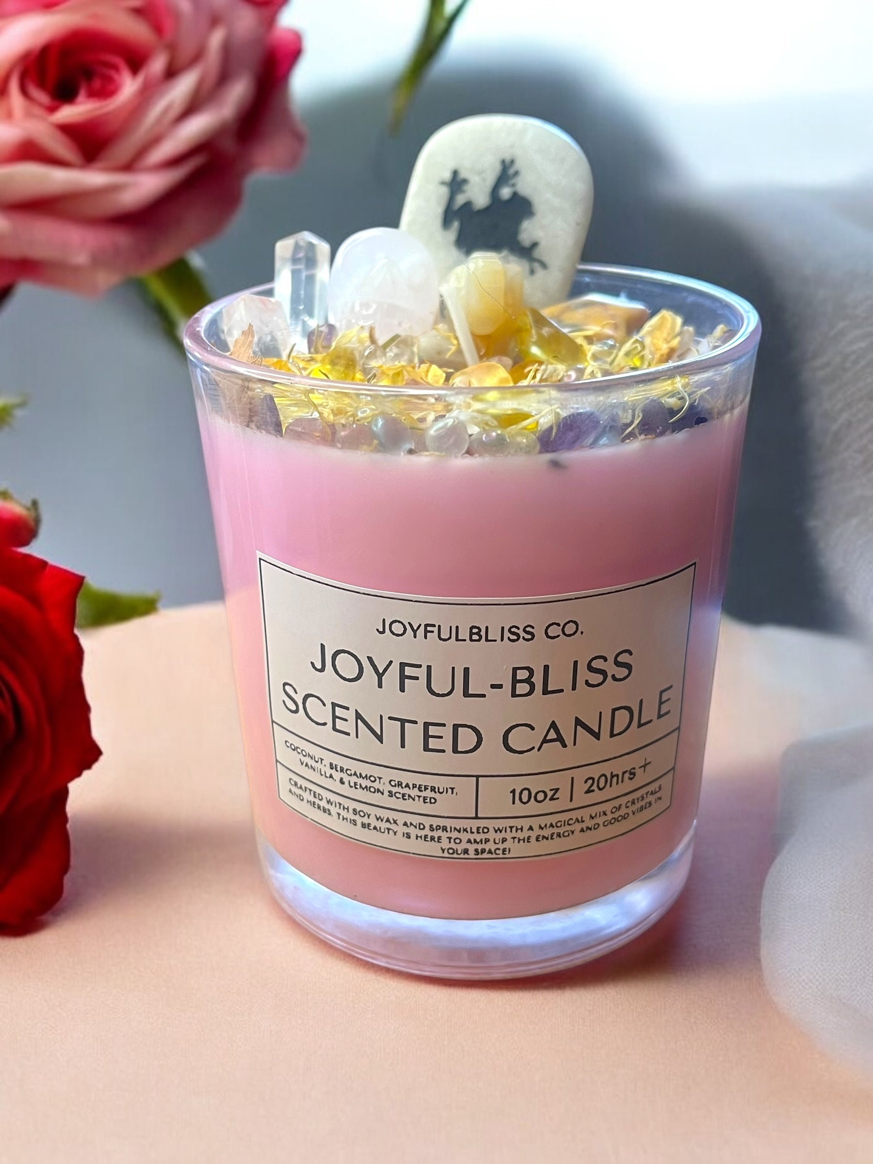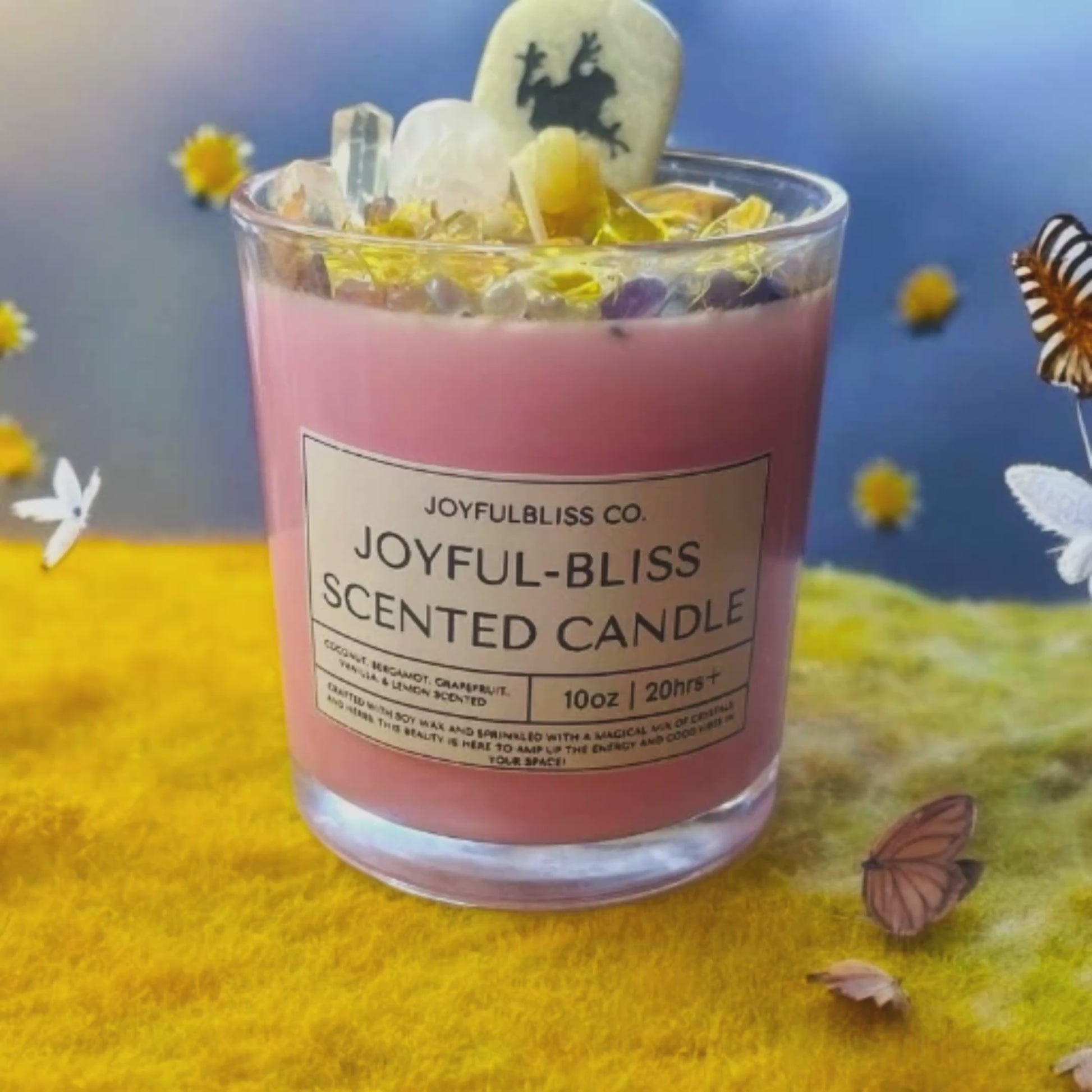 Brighten your space and uplift your energy with the Joyful-Bliss Scented Candle by JoyfulBliss Co. This 10oz soy wax candle is a cheerful celebration of scent and sparkle—infused with citrusy bliss, colorful crystals, and light-hearted vibes. Perfect for daily joy rituals, mood-boosting moments, or as a magical gift to share.