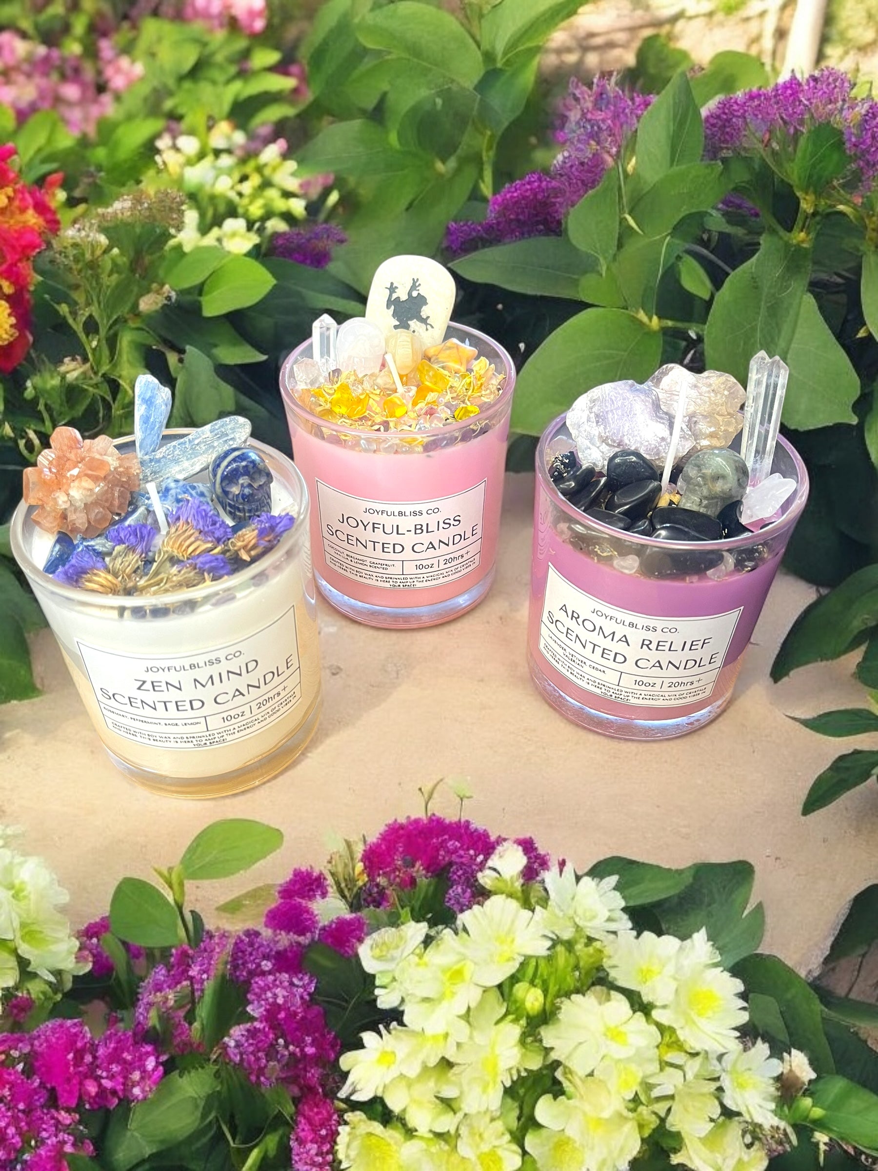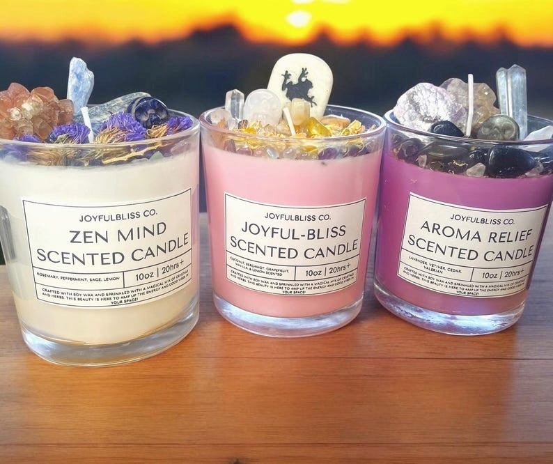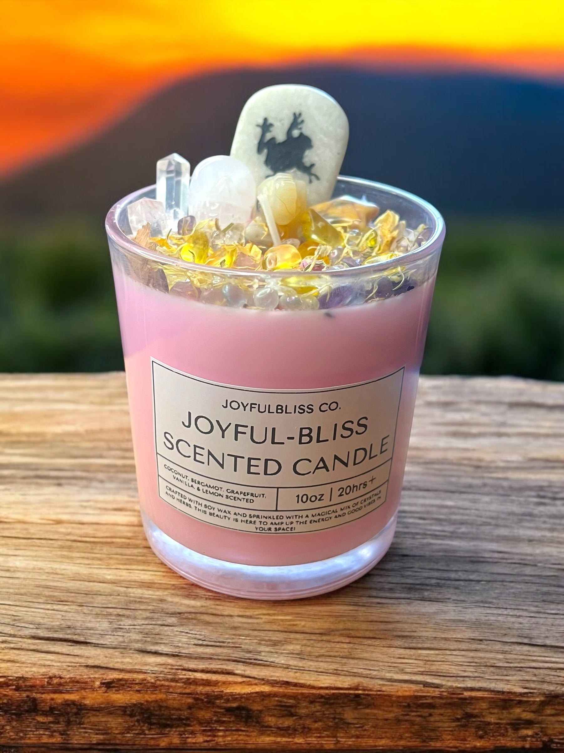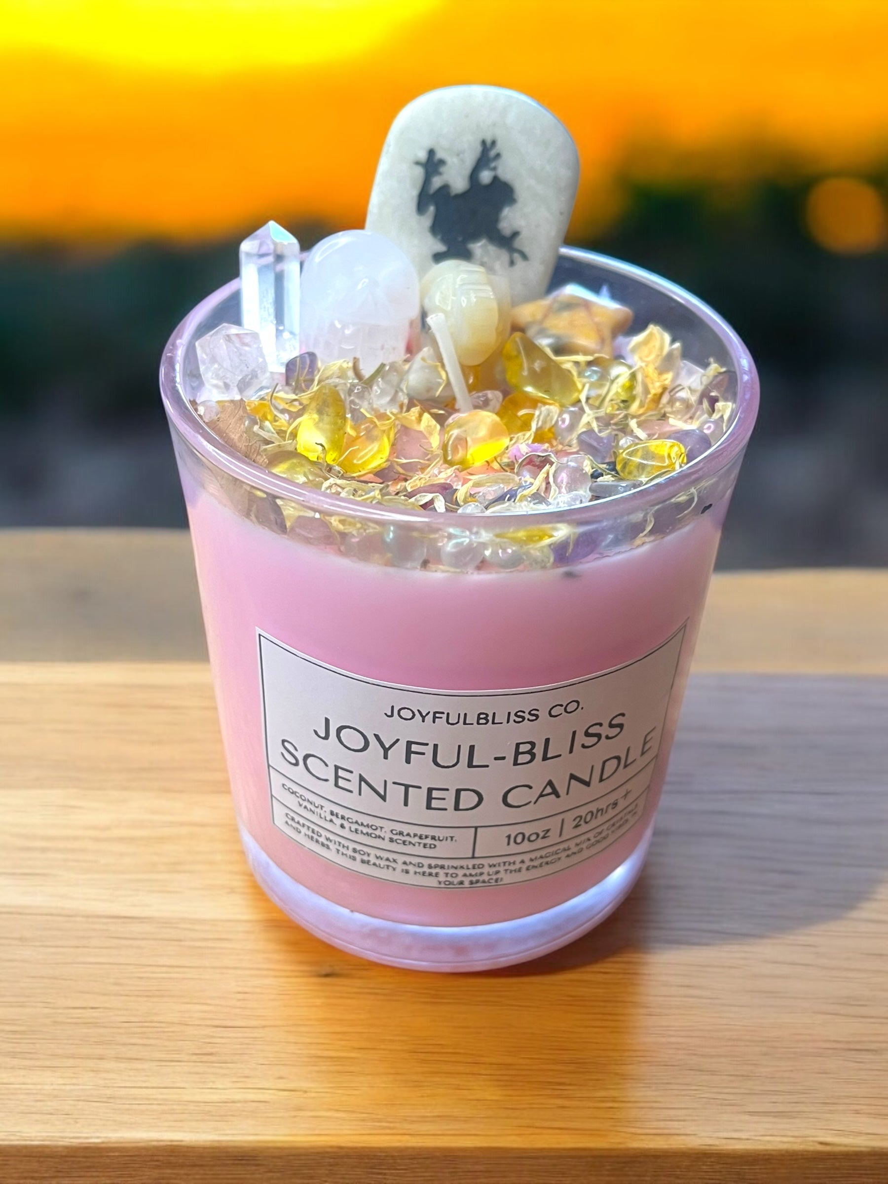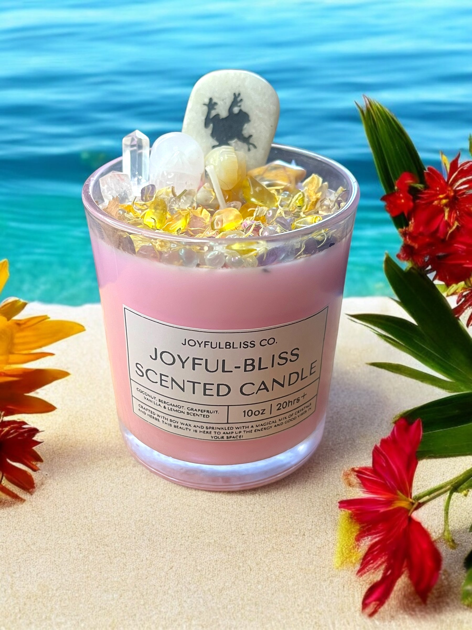 Brighten your space and uplift your energy with the Joyful-Bliss Scented Candle by JoyfulBliss Co. This 10oz soy wax candle is a cheerful celebration of scent and sparkle—infused with citrusy bliss, colorful crystals, and light-hearted vibes. Perfect for daily joy rituals, mood-boosting moments, or as a magical gift to share.