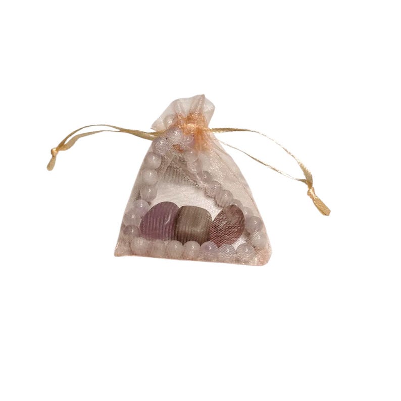 Embrace serenity and spiritual balance with this enchanting Light Amethyst & Fluorite Crystal Set, featuring a delicate light amethyst beaded bracelet paired with three polished fluorite stones. Each piece is thoughtfully packaged in a satin drawstring pouch, making it perfect for personal use or gifting.