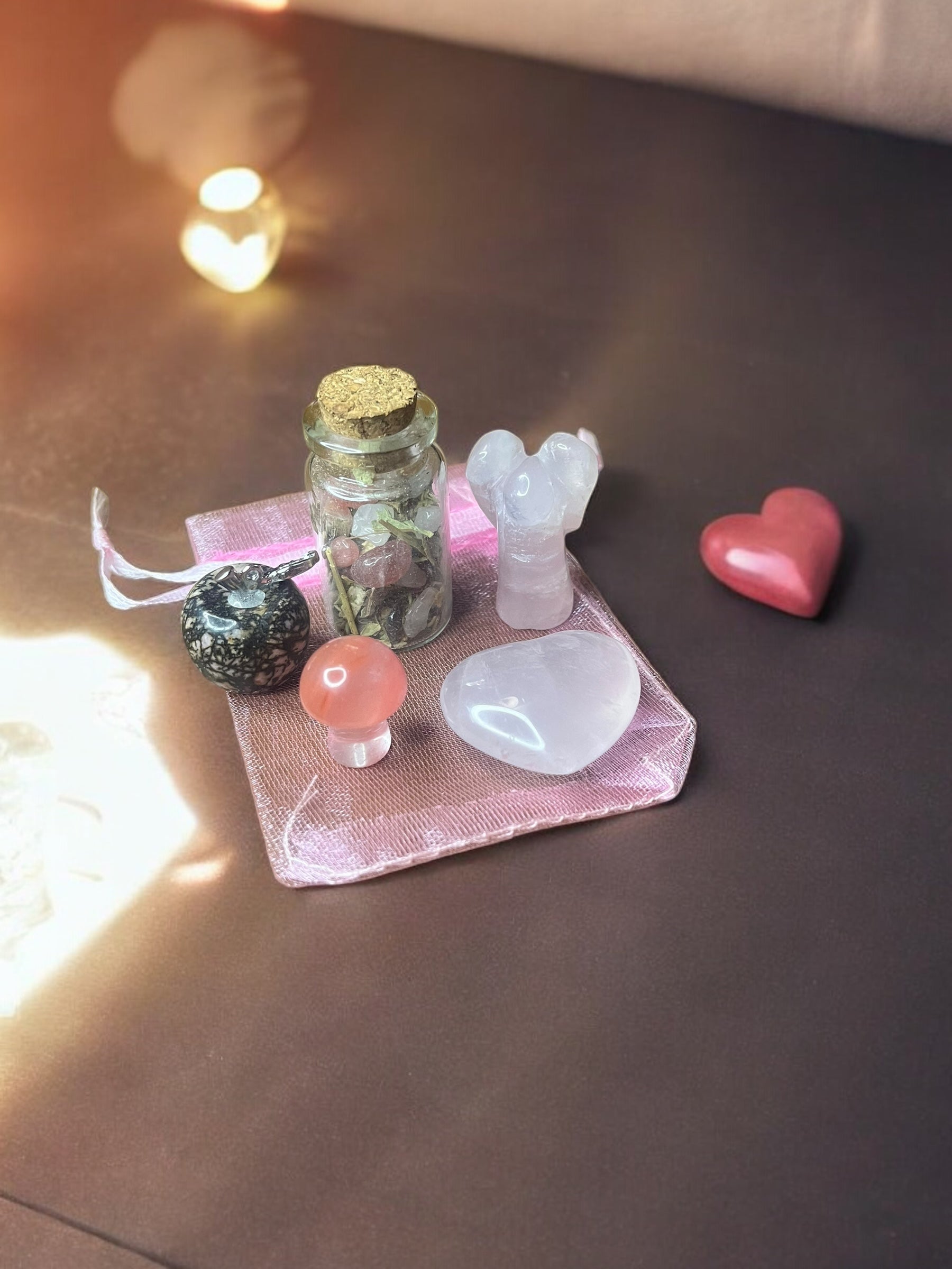 Love & Joy Mojo Bag – Crystal Charm Set for Heart Healing, Self-Love, and Emotional Uplift | Intention-Charged Ritual Kit