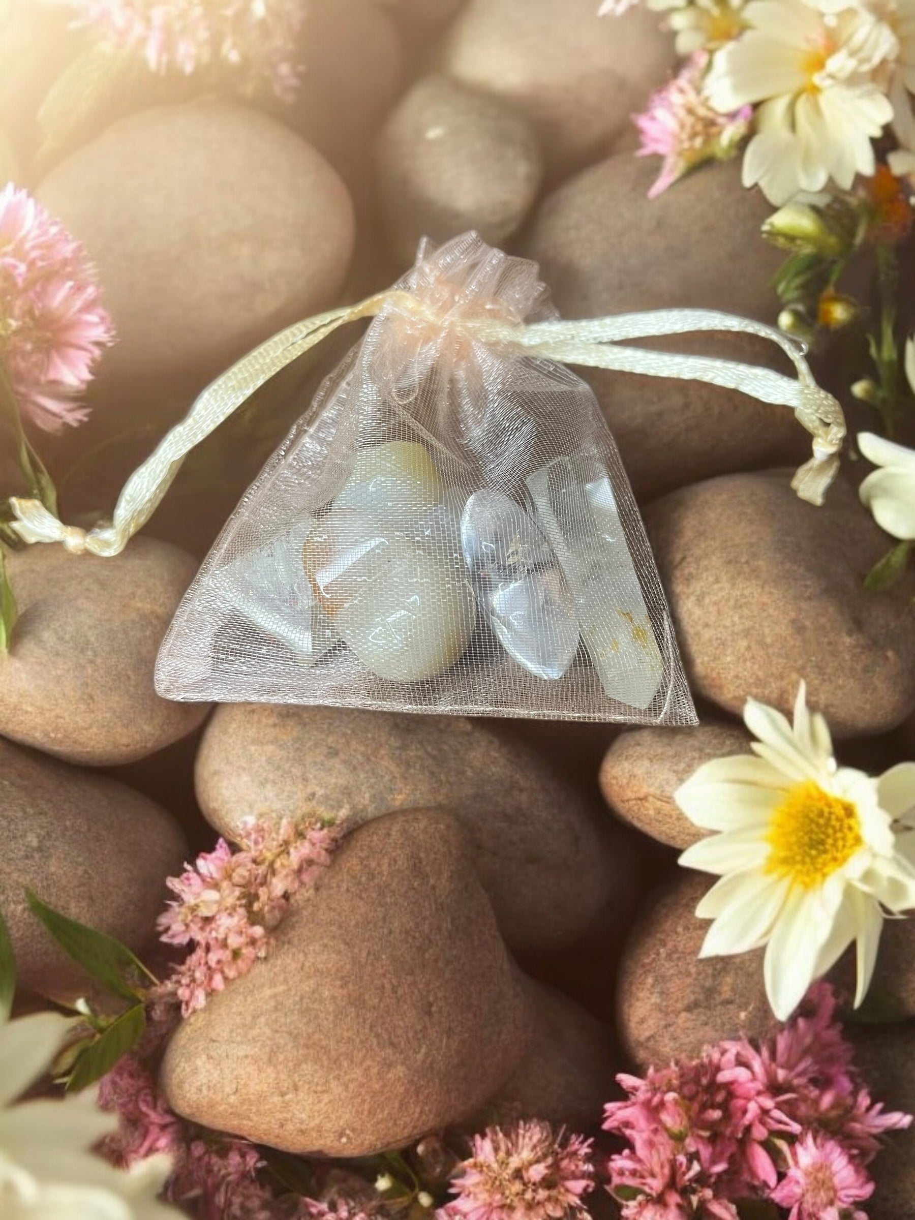 Manifesting Mojo Bag – Intention-Charged Crystal Set for Abundance, Vision & Spiritual Alignment | Handmade Law of Attraction Kit