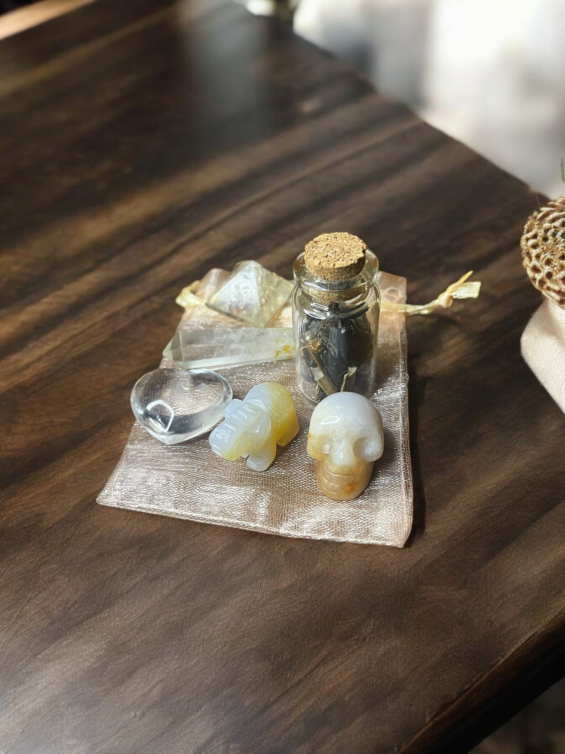 • Citrine or Golden Calcite skull for focus, creativity, and breakthrough energy