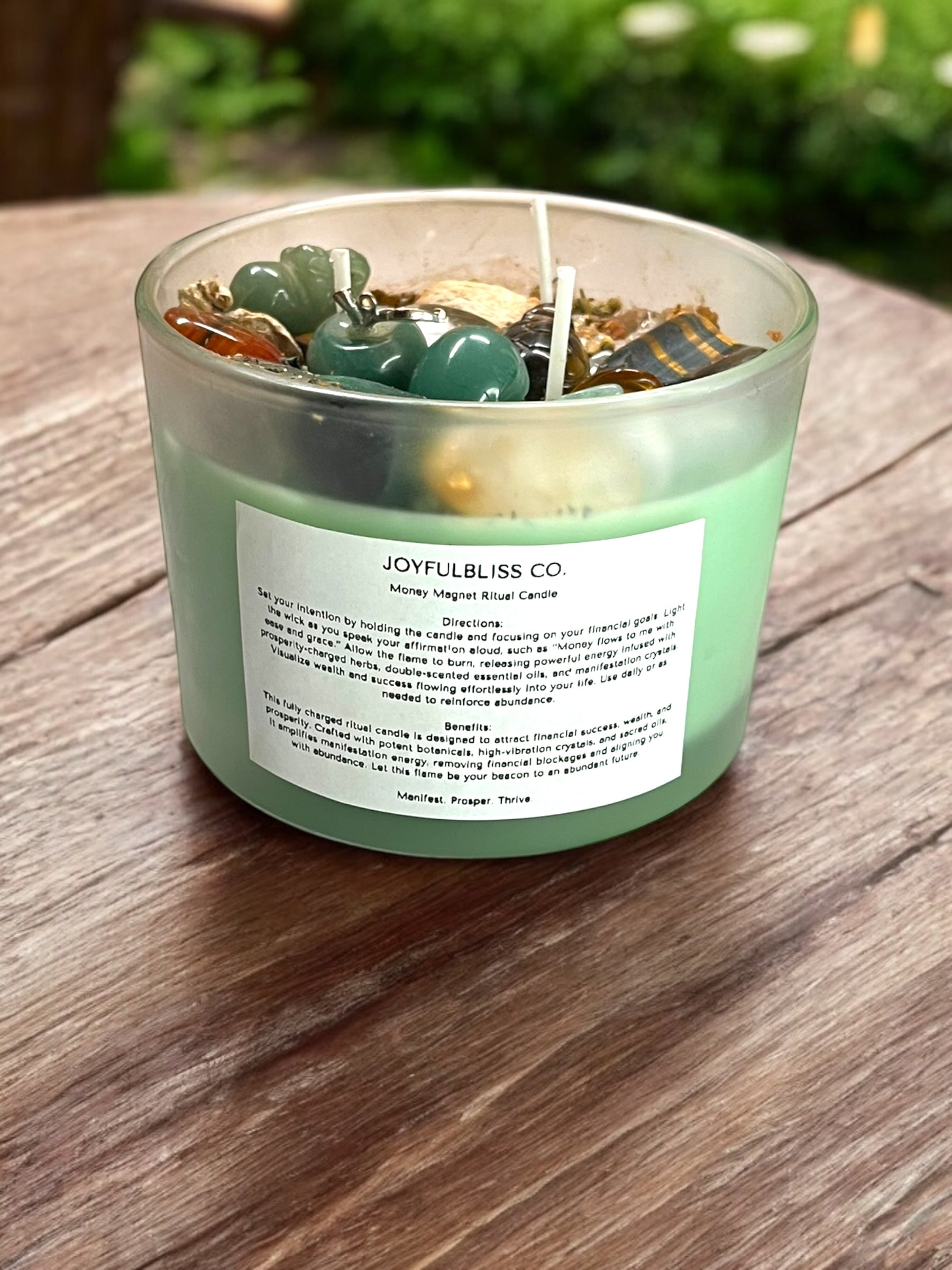 Money Magnet Ritual Candle – Crystal Charged | Attract Wealth, Abundance & Prosperity | 18oz Soy Intention Candle by JoyfulBliss Co.