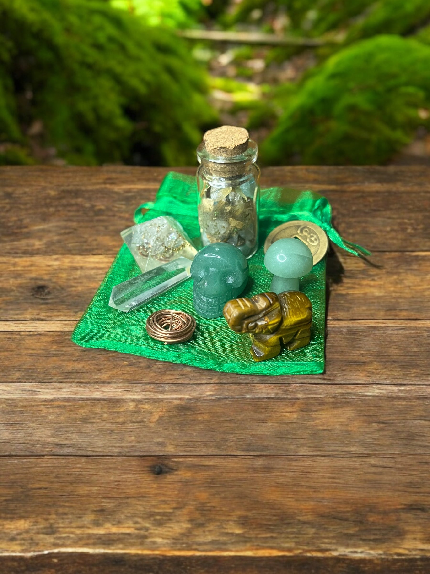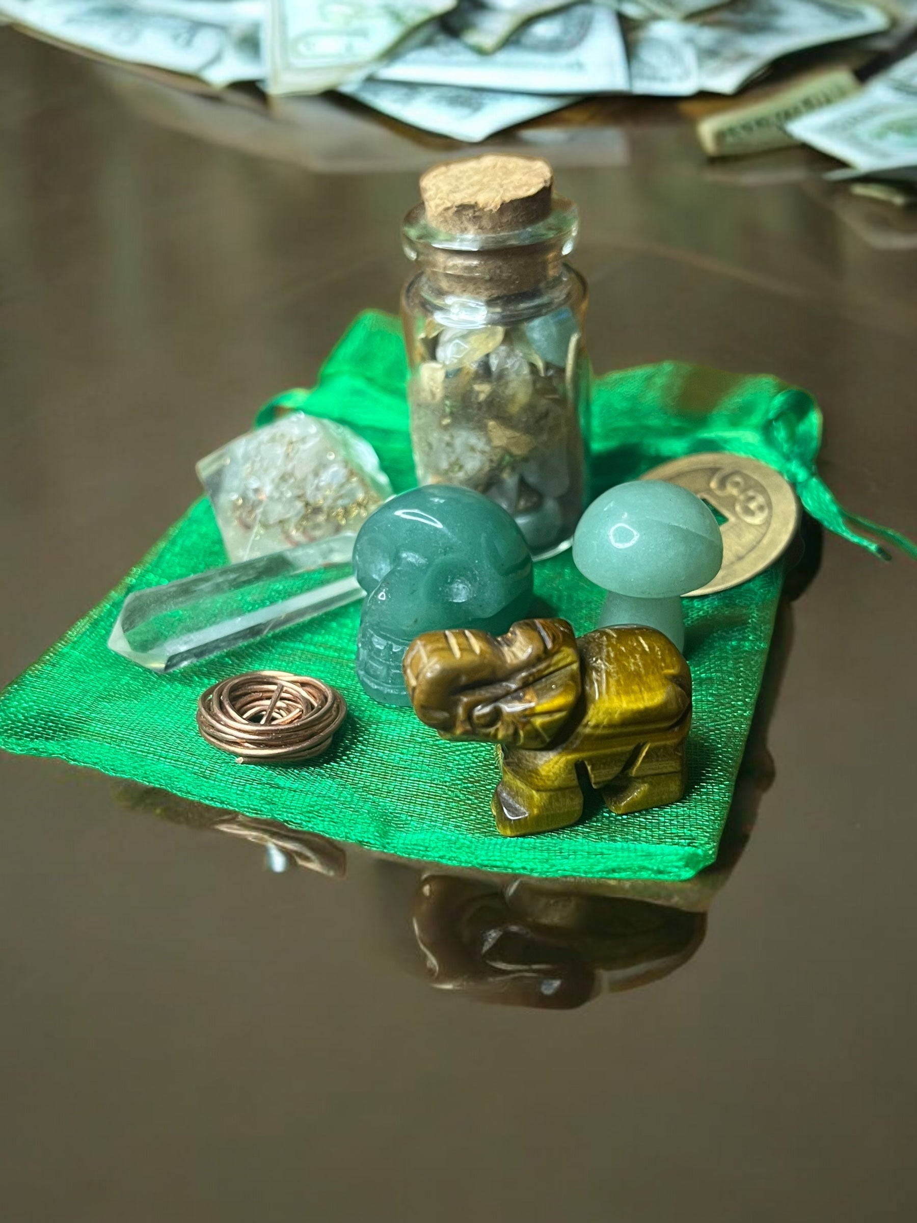 Money Mojo Bag – Energy-Charged Crystal Charm Set for Wealth, Abundance & Good Fortune | Custom Made to Order