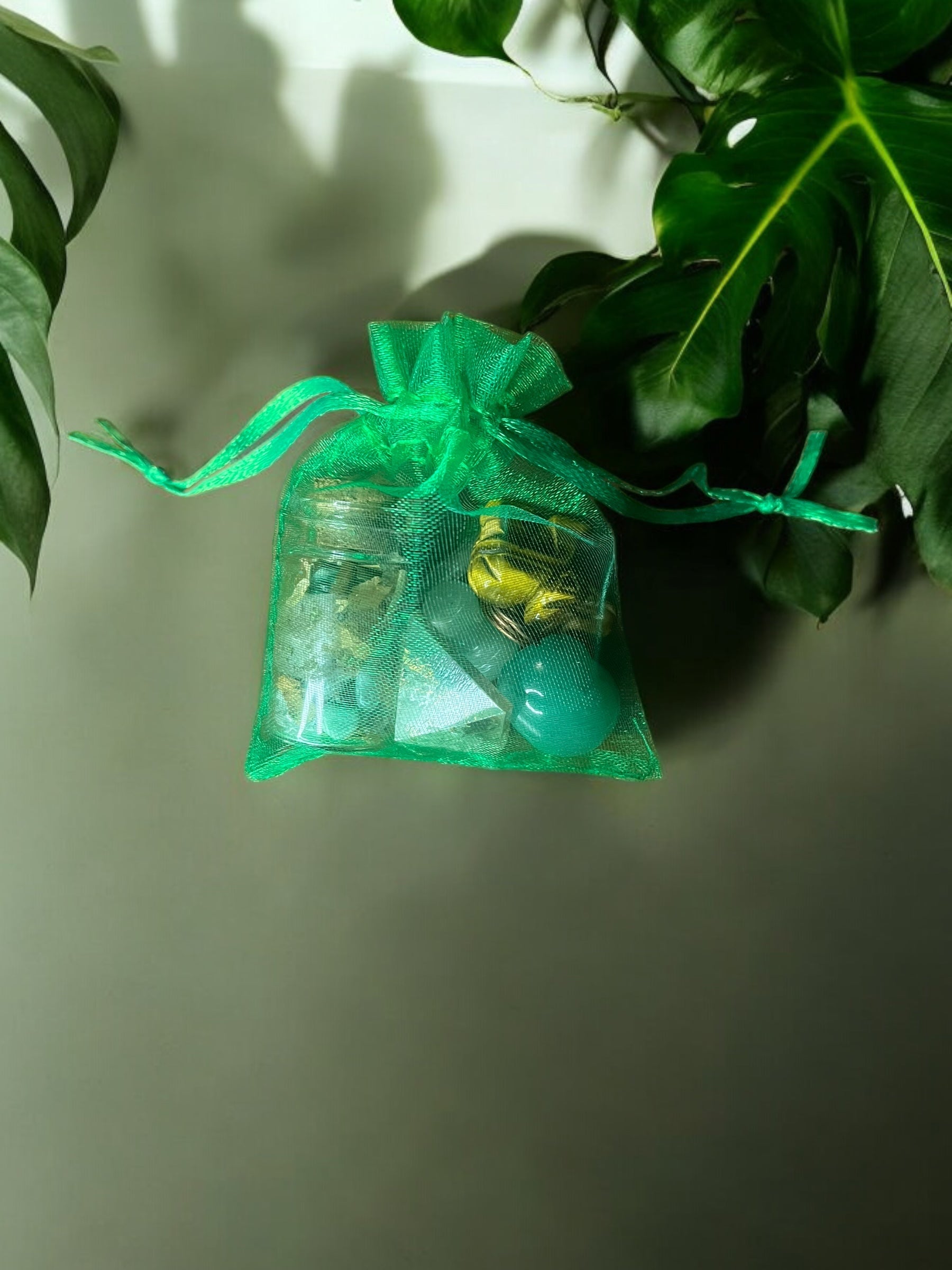• Mini spell jar with herbs, gold leaf, or money-attracting ingredients