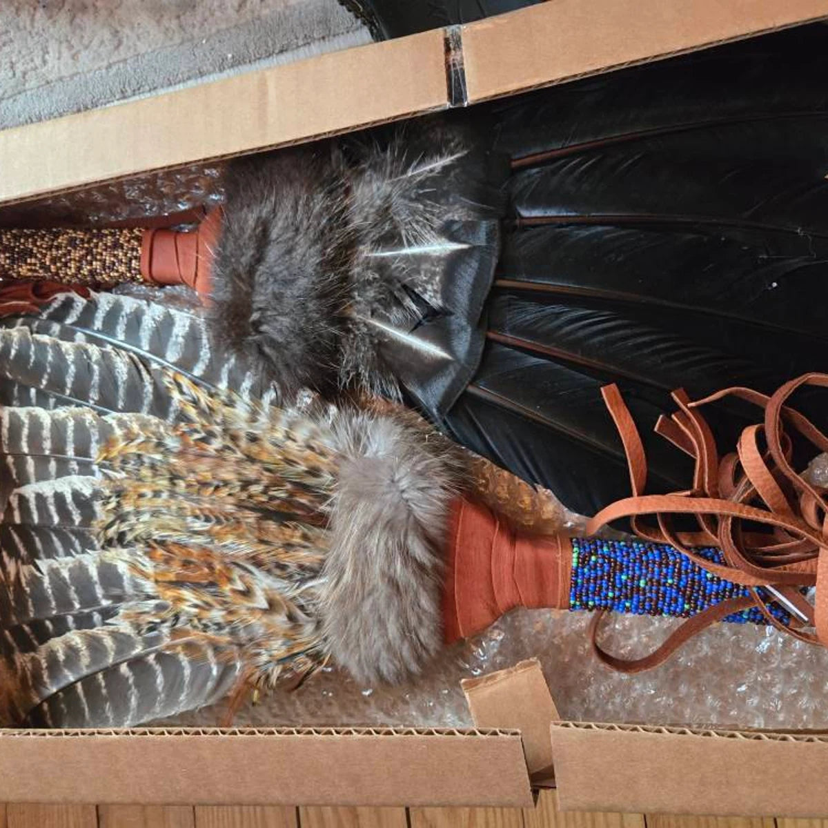 Each fan is carefully handcrafted to preserve the rich cultural significance of smudging rituals. It's an artistic representation of heritage that stands out in any space.