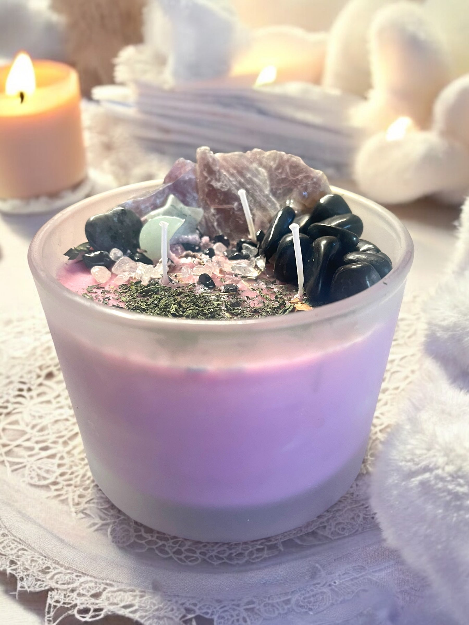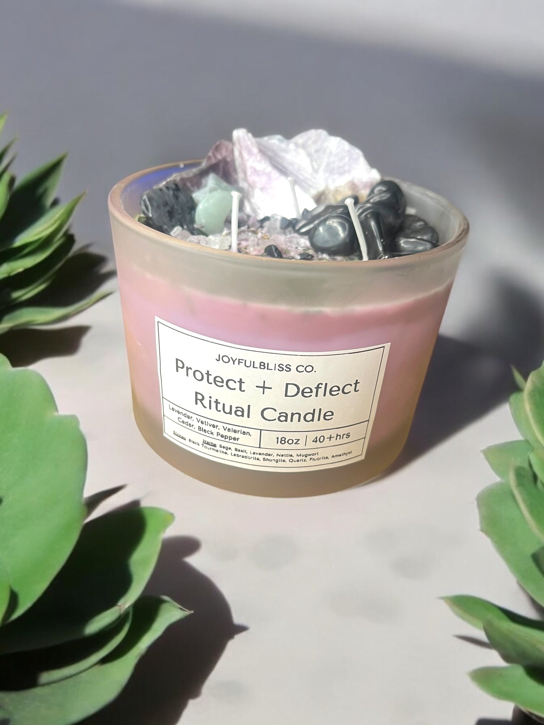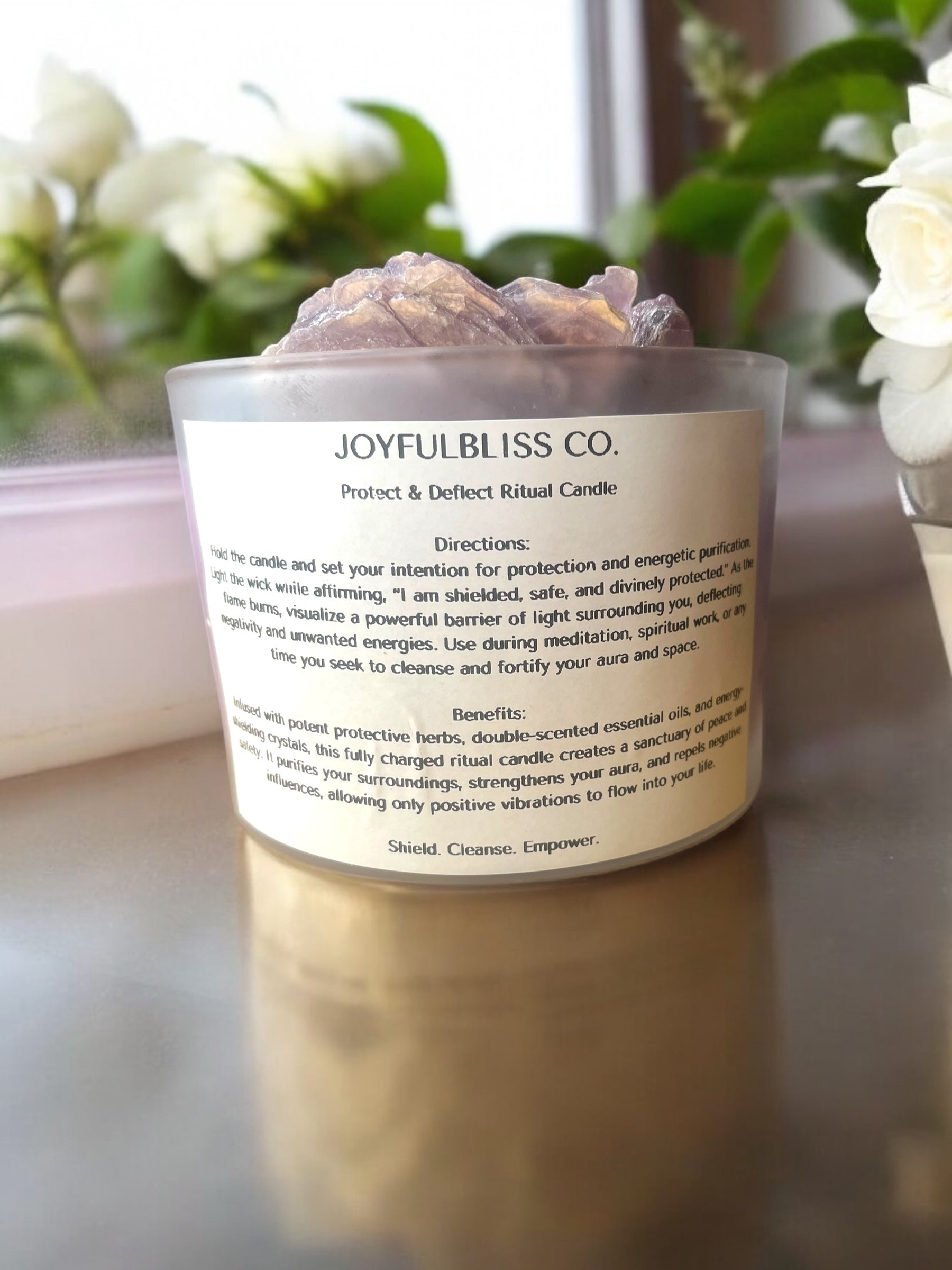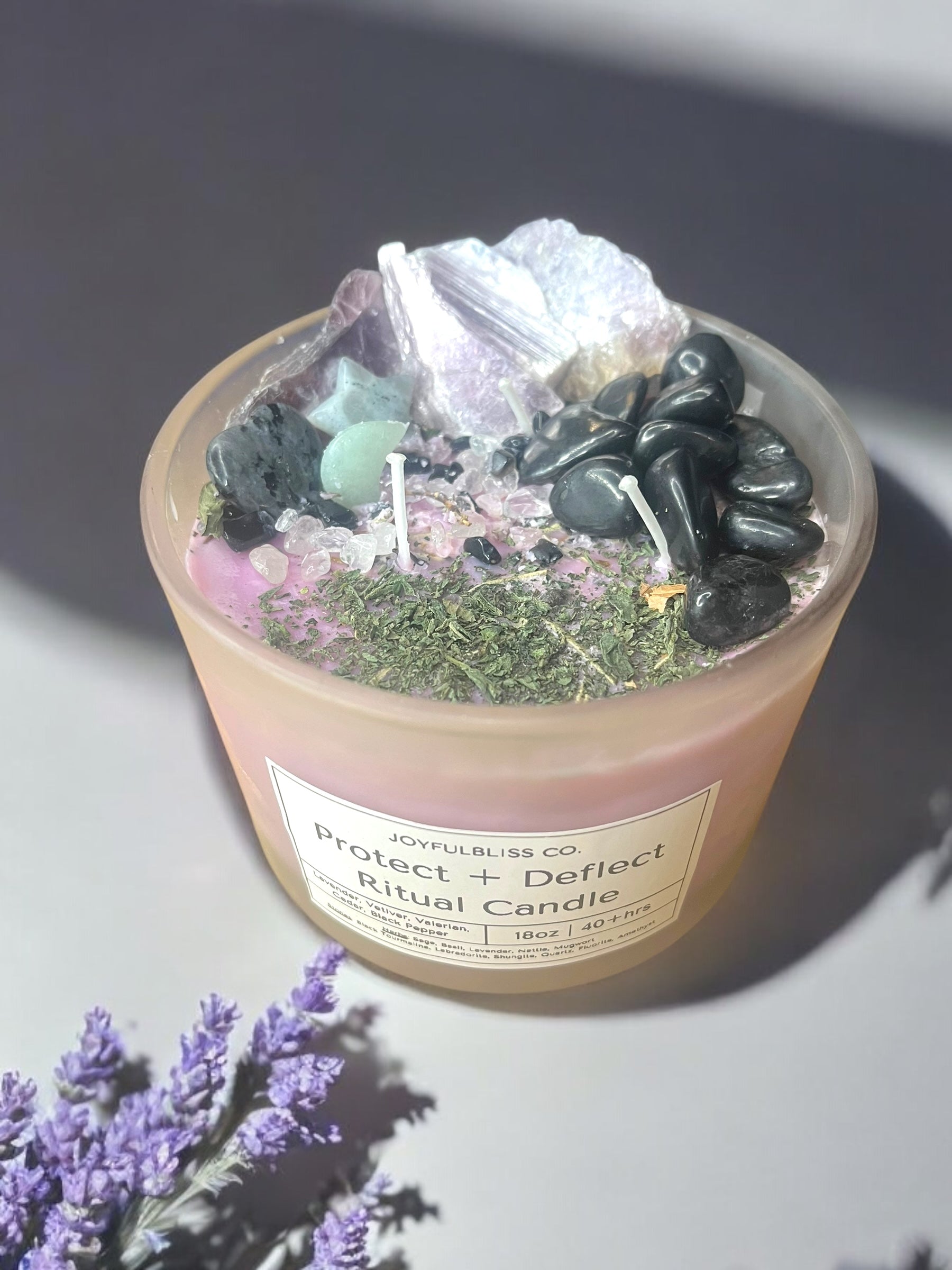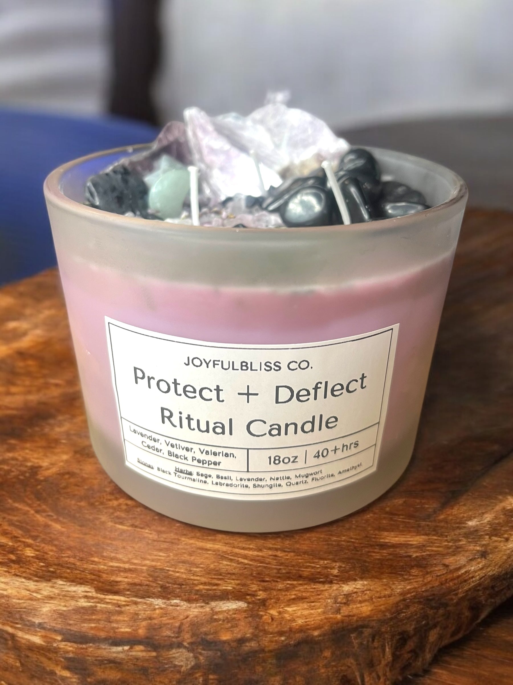 Protect + Deflect Ritual Candle – 18oz Crystal-Infused Soy Candle for Energy Shielding, Aura Protection & Spiritual Cleansing