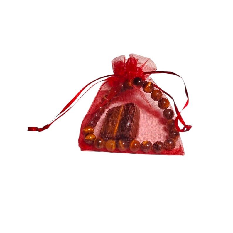 Harness the bold energy of Tiger’s Eye with this powerful crystal set, featuring a polished beaded bracelet and a matching tumbled stone, beautifully presented in a red organza pouch. Known as a stone of protection, strength, and clarity, Tiger’s Eye empowers you to stay grounded while confidently moving forward in life.
