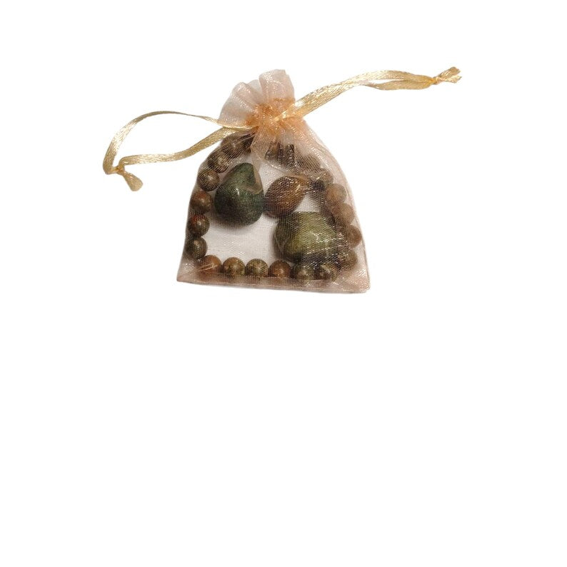 Bring harmony to mind, body, and spirit with this grounding Unakite and Fancy Jasper crystal set. Featuring a natural Unakite 8mm beaded bracelet and three polished Fancy Jasper stones, this set is perfect for emotional healing, balance, and everyday spiritual support.