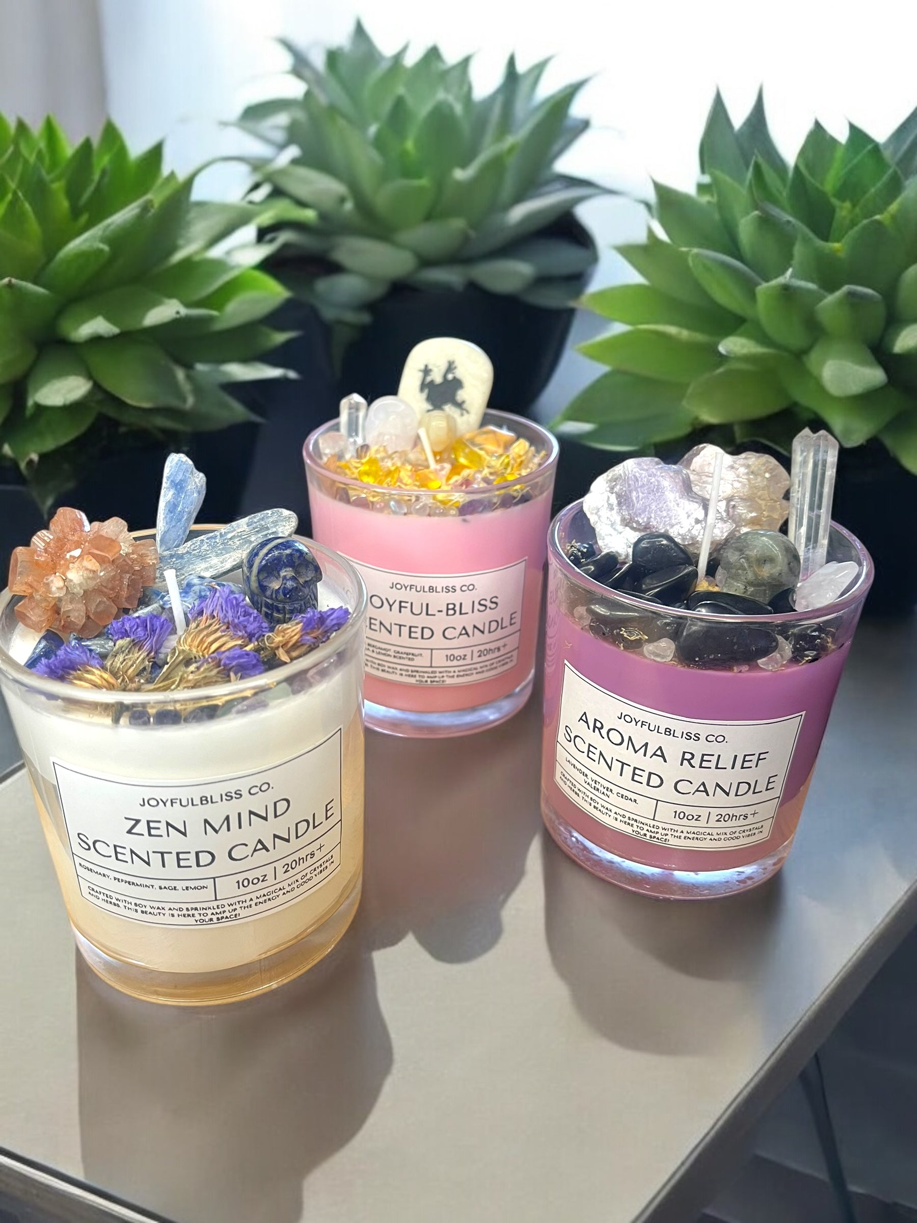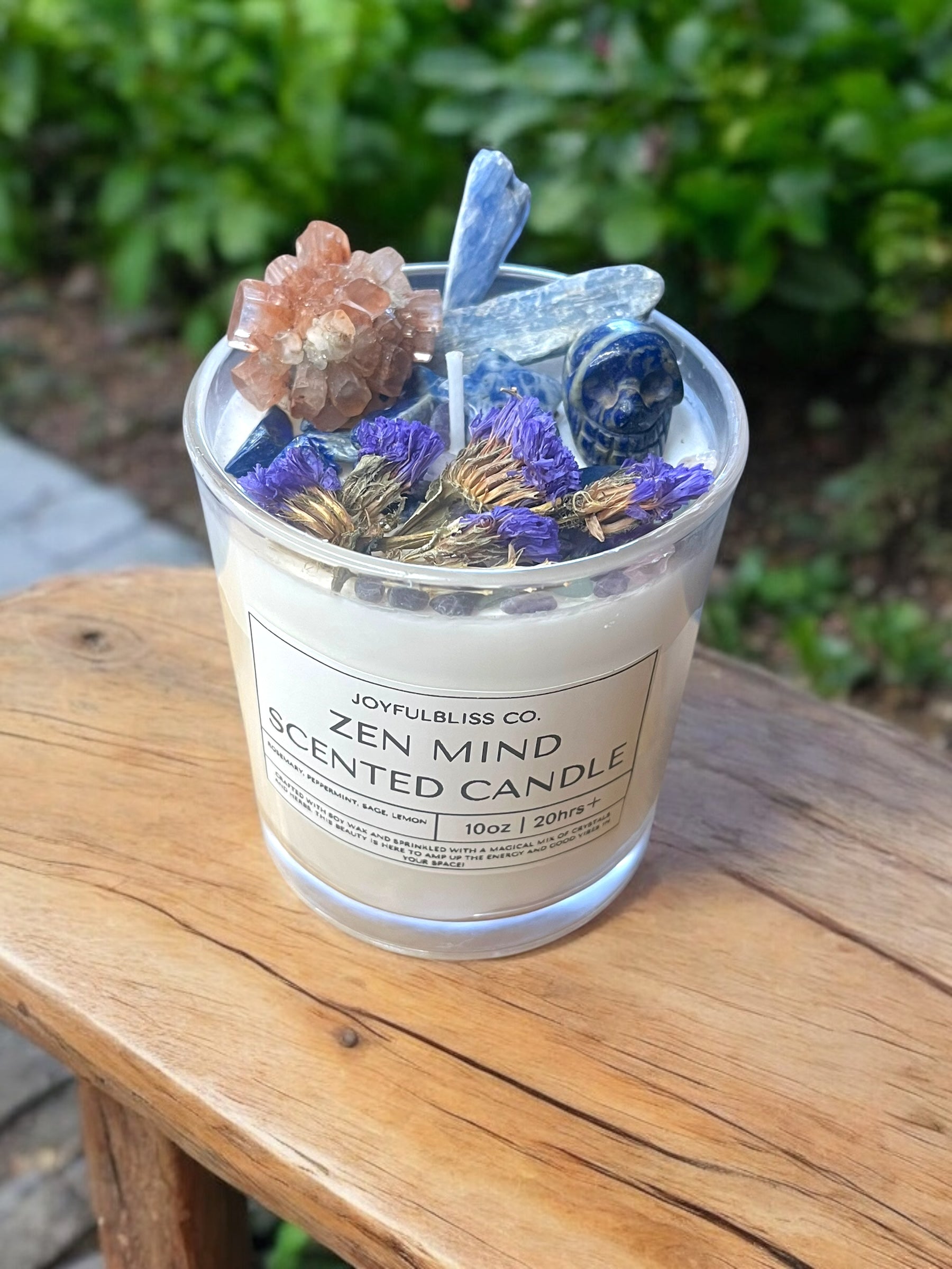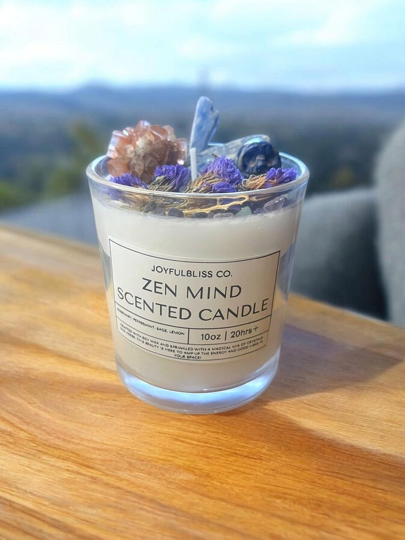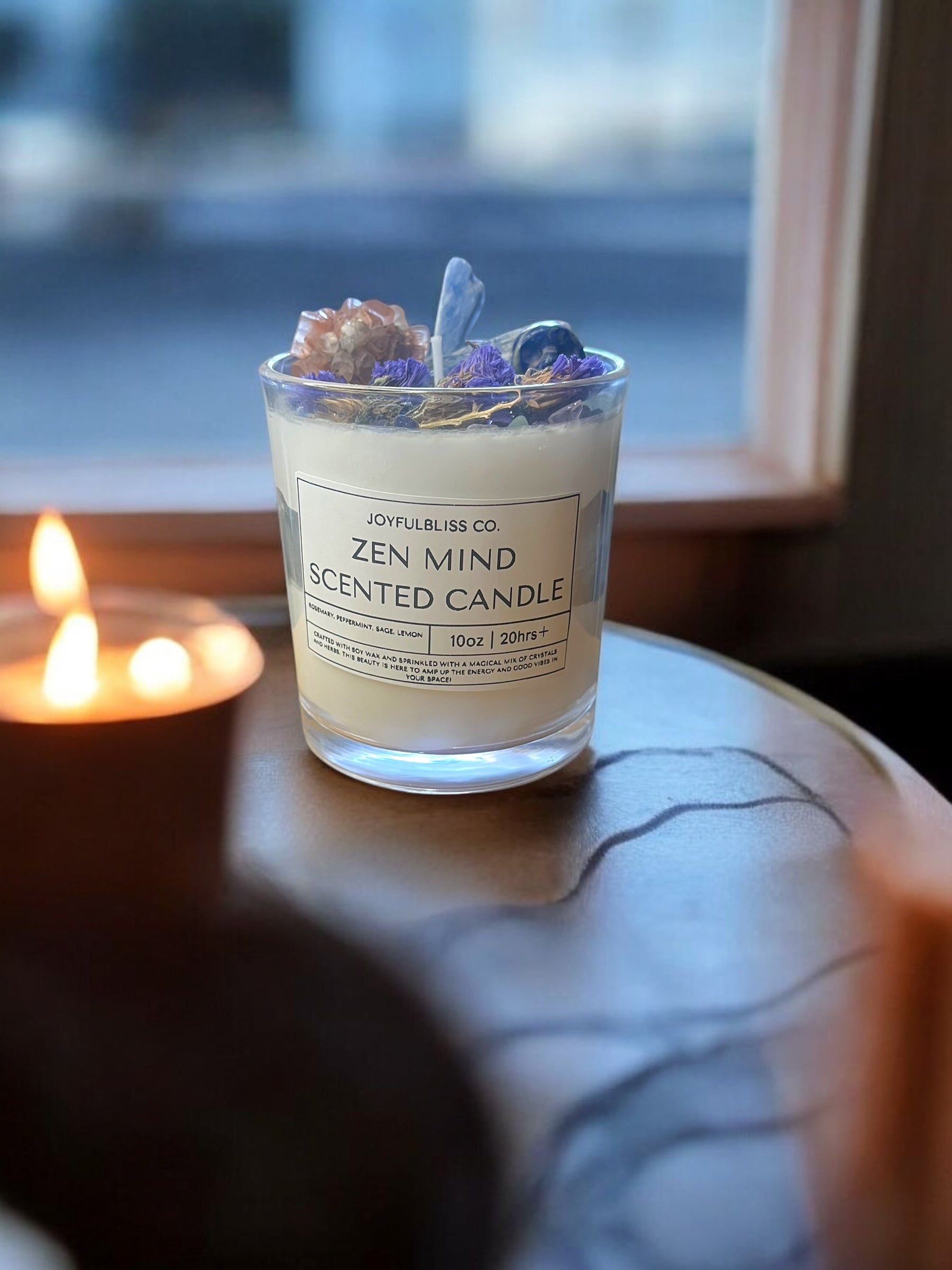 Quiet the noise, center your thoughts, and tap into clarity with the Zen Mind Scented Candle by JoyfulBliss Co. This 10oz soy wax candle is crafted for mindfulness, meditation, and peaceful presence. Infused with uplifting botanicals, earthy herbs, and calming crystals, it’s the perfect anchor for your daily rituals and quiet moments.