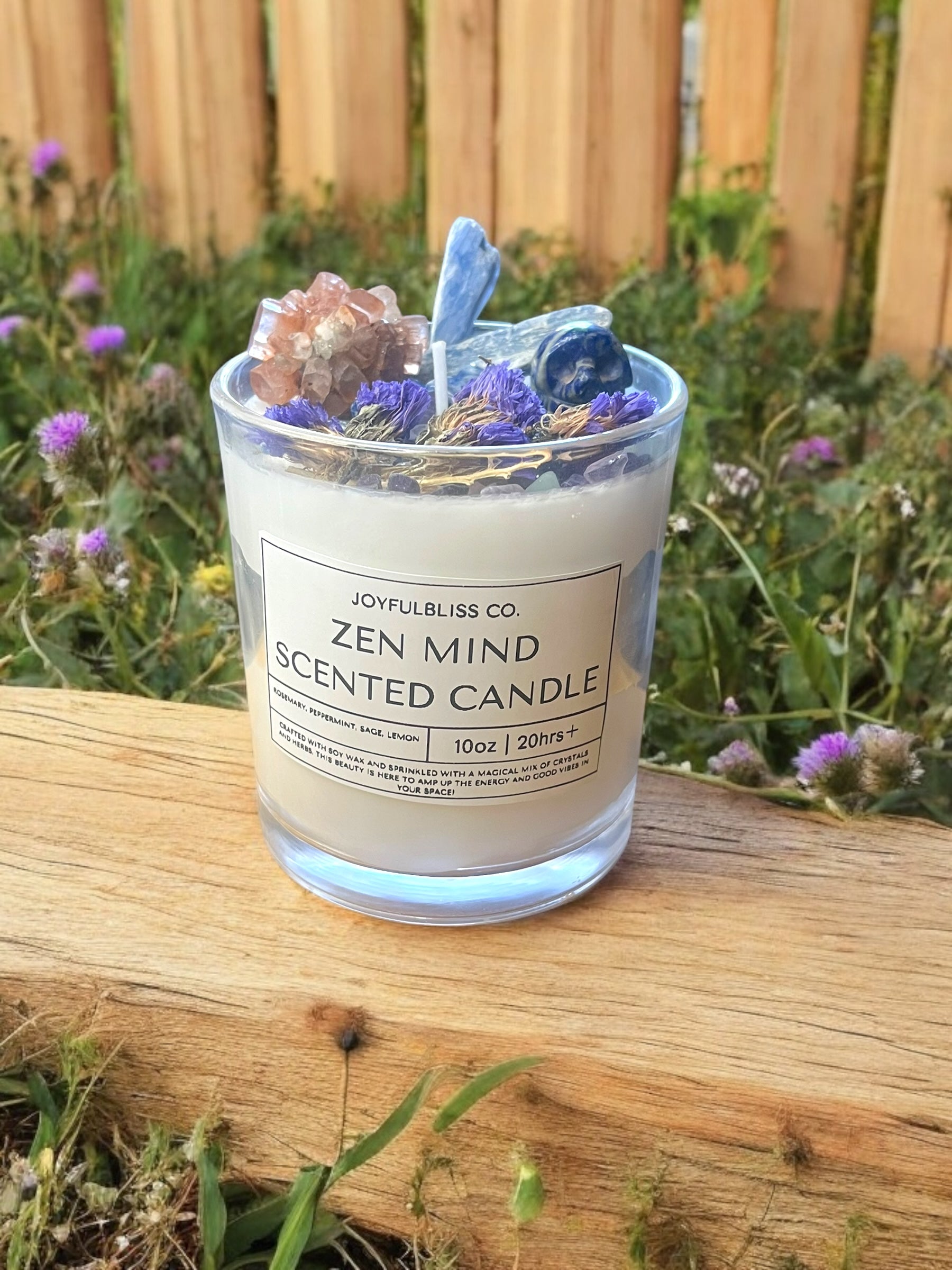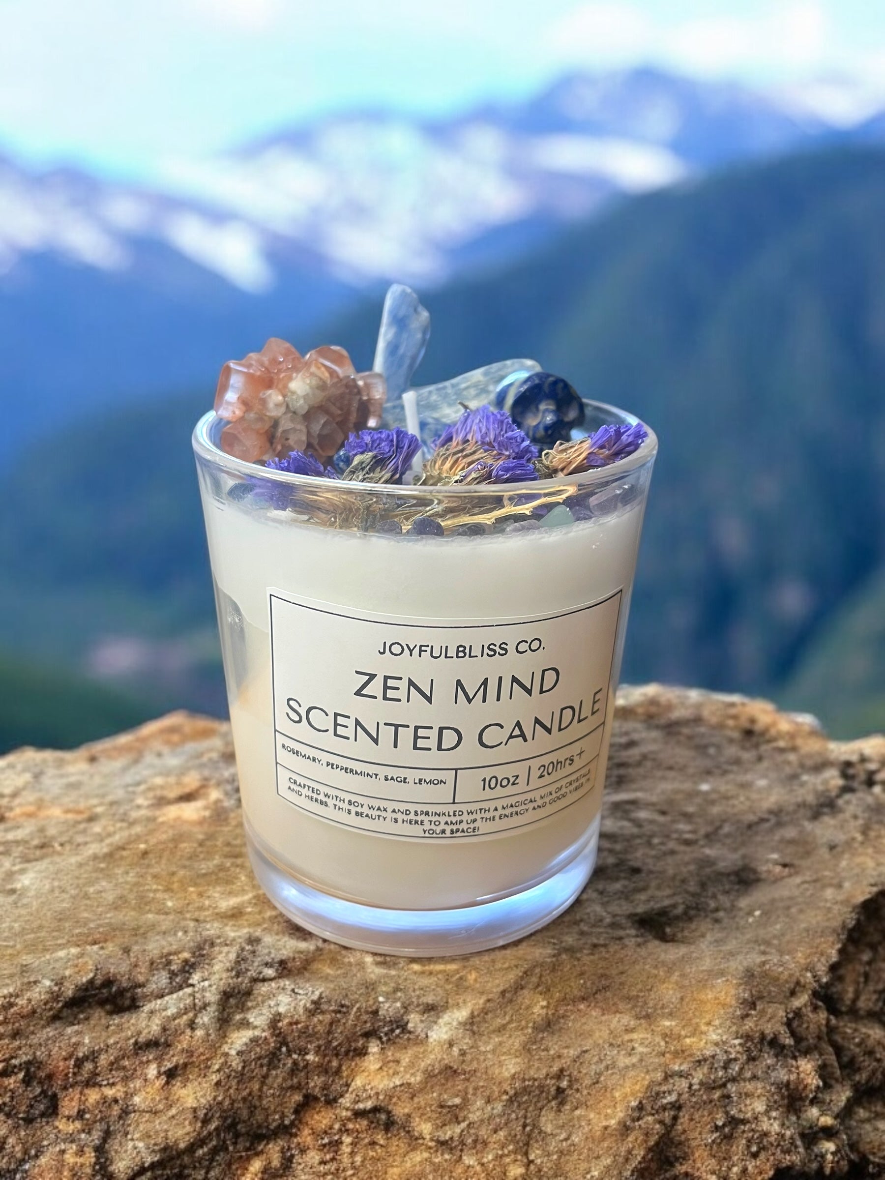 Zen Mind Scented Candle – 10oz Crystal Meditation Candle for Clarity, Calm & Mental Focus | Soy Candle with Rosemary, Peppermint, Sage & Lemon